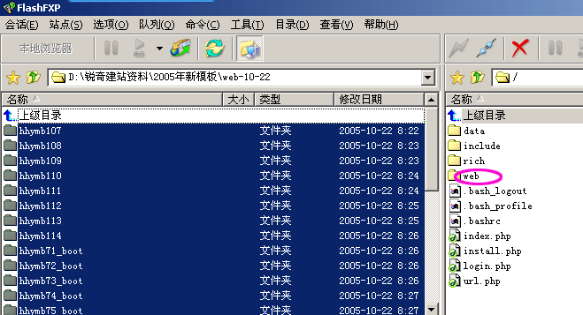 9、双击web文件夹后,右边框即可显示出服务器上所有的模板文件。如下图: